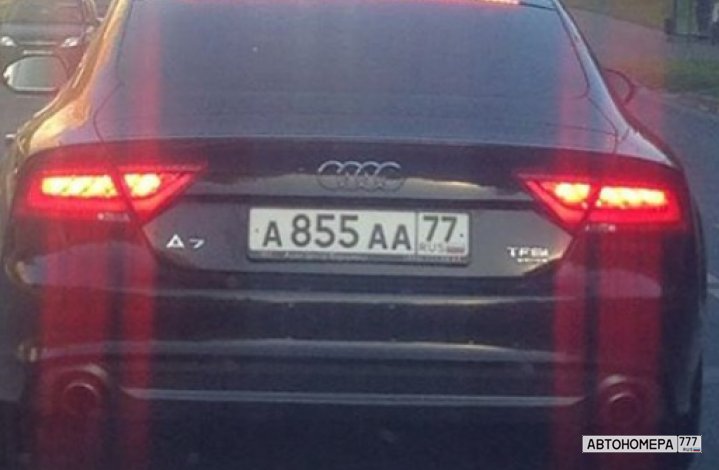 Номер А855АА77 на автомобиле