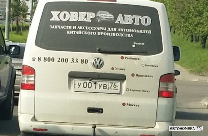 Номер У001УВ76 на автомобиле