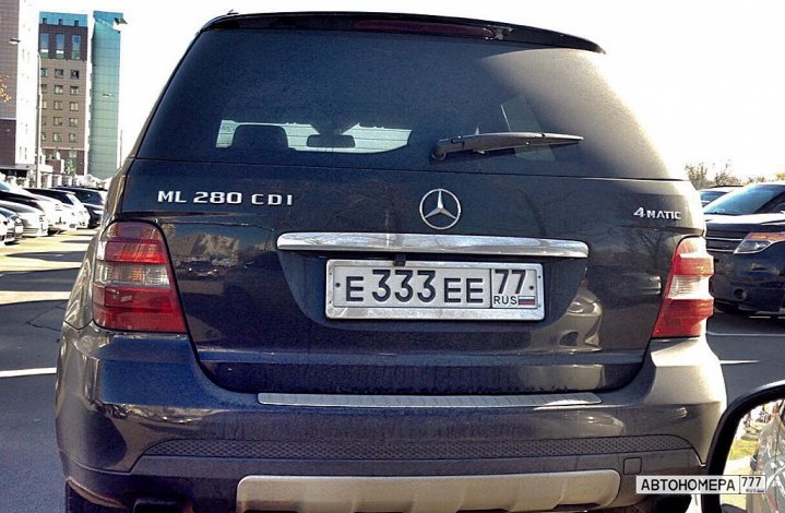 Номер Е333ЕЕ77 на автомобиле