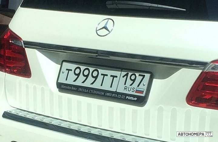 Номер Т999ТТ197 на автомобиле