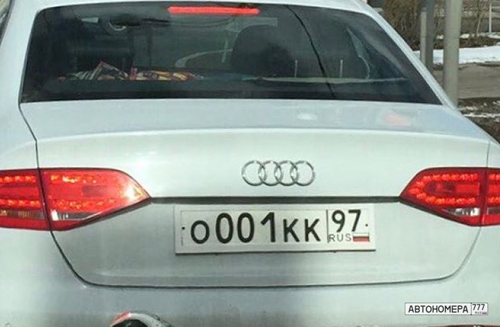 Номер О001КК97 на автомобиле