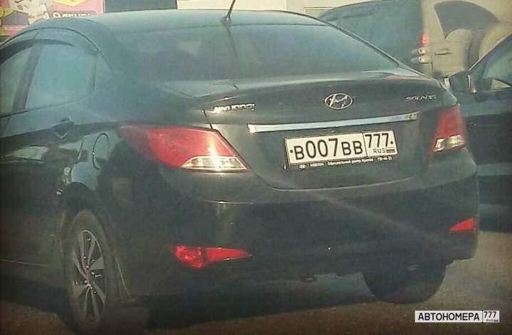 Номер В007ВВ777 на автомобиле