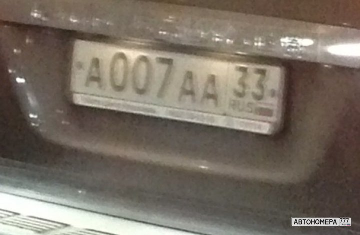 Номер А007АА33 на автомобиле