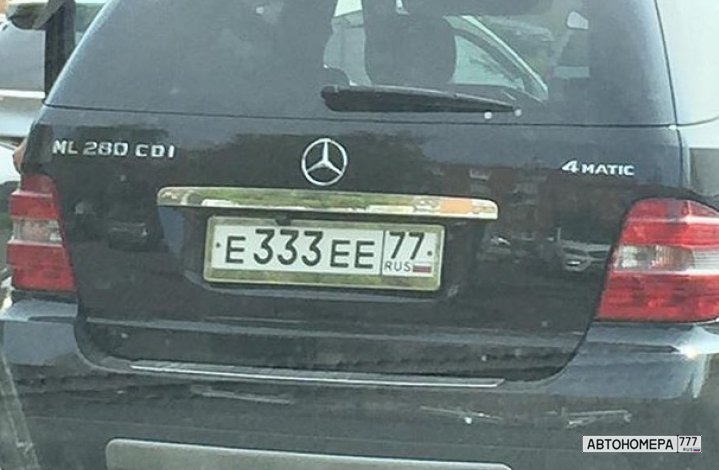 Номер Е333ЕЕ77 на автомобиле