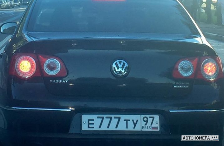 Номер Е777ТУ97 на автомобиле