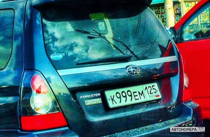 Номер К999ЕМ125 на автомобиле