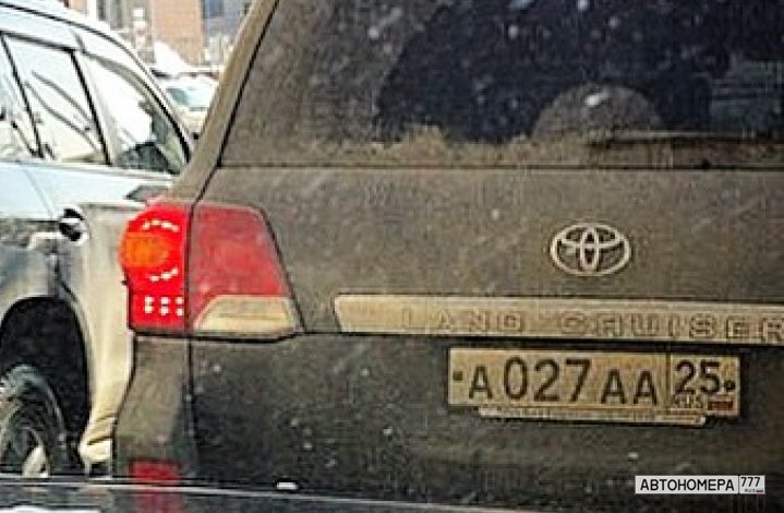 Номер А027АА25 на автомобиле