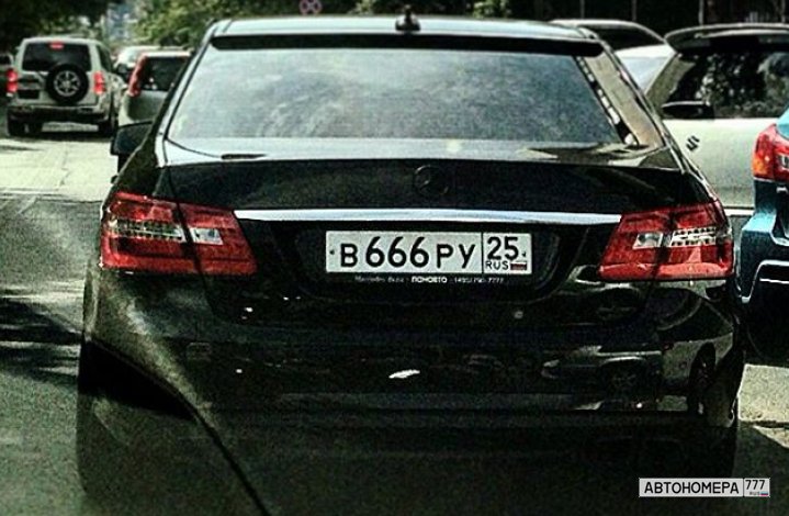 Номер В666РУ25 на автомобиле