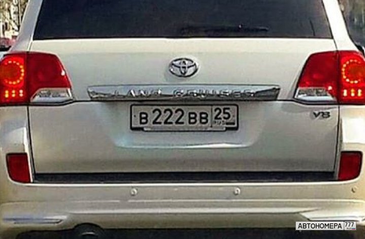 Номер В222ВВ25 на автомобиле