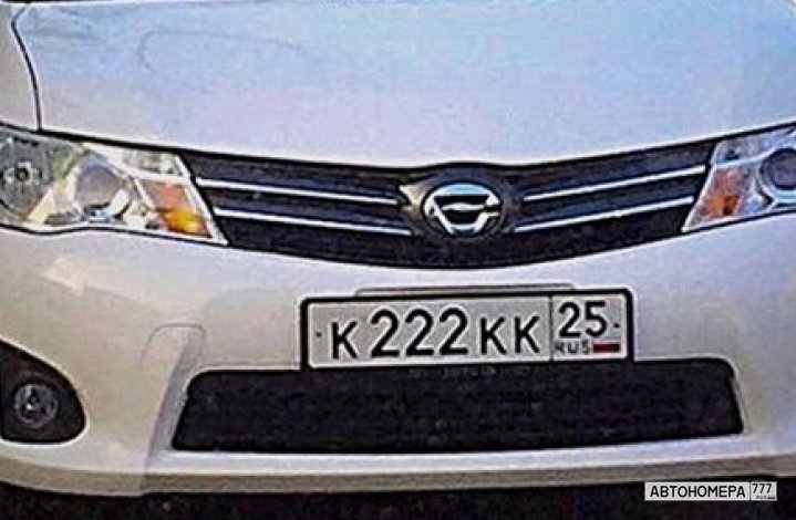 Номер К222КК25 на автомобиле