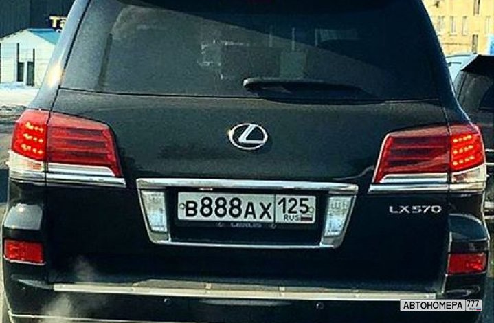 Номер В888АХ125 на автомобиле