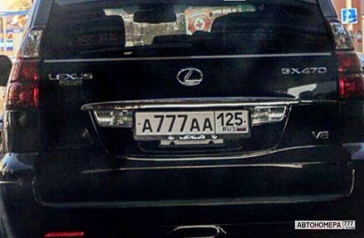 Номер А777АА125 на автомобиле