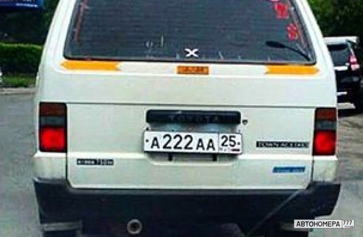 Номер А222АА25 на автомобиле