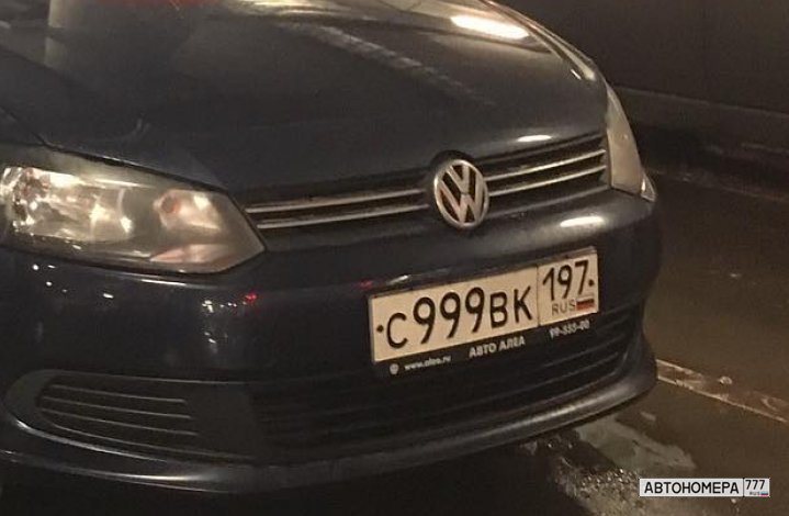 Номер С999ВК197 на автомобиле