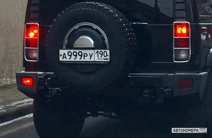 Номер А999РУ190 на автомобиле