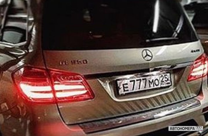 Номер Е777МО25 на автомобиле