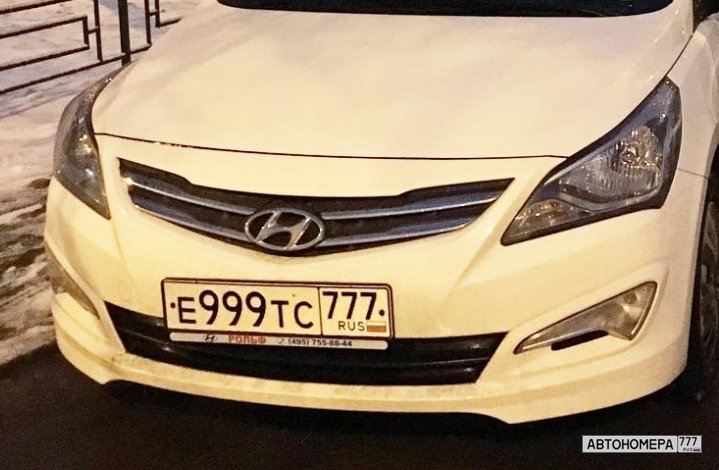 Номер Е999ТС777 на автомобиле