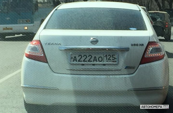 Номер А222АО125 на автомобиле