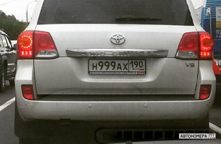 Номер Н999АХ190 на автомобиле