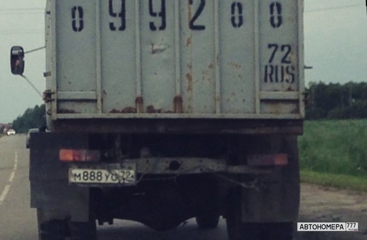 Номер М888УО72 на автомобиле