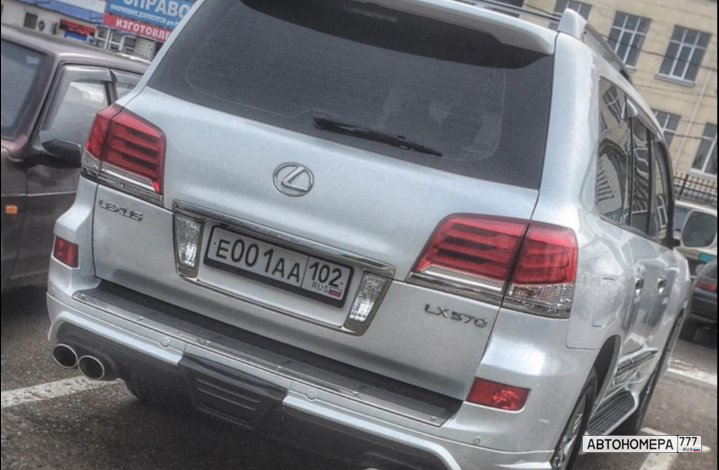 Номер Е001АА102 на автомобиле