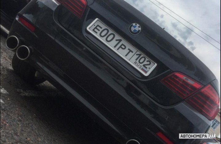 Номер Е001РТ102 на автомобиле