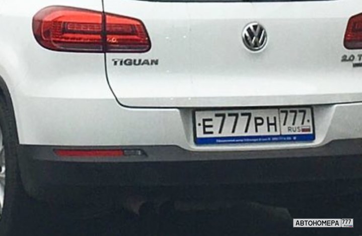Номер Е777РН777 на автомобиле