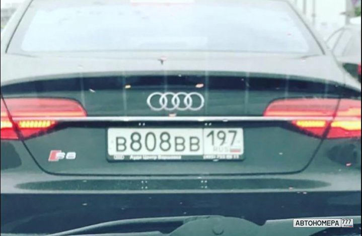 Номер В808ВВ197 на автомобиле