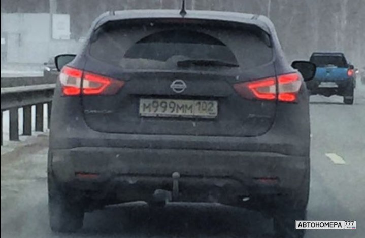 Номер М999ММ102 на автомобиле
