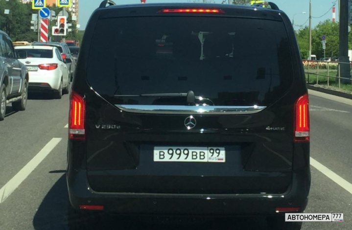 Номер В999ВВ99 на автомобиле
