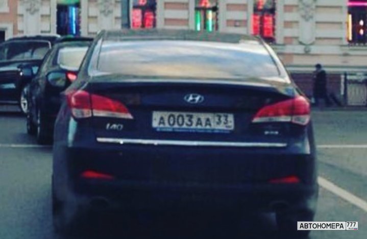 Номер А003АА33 на автомобиле
