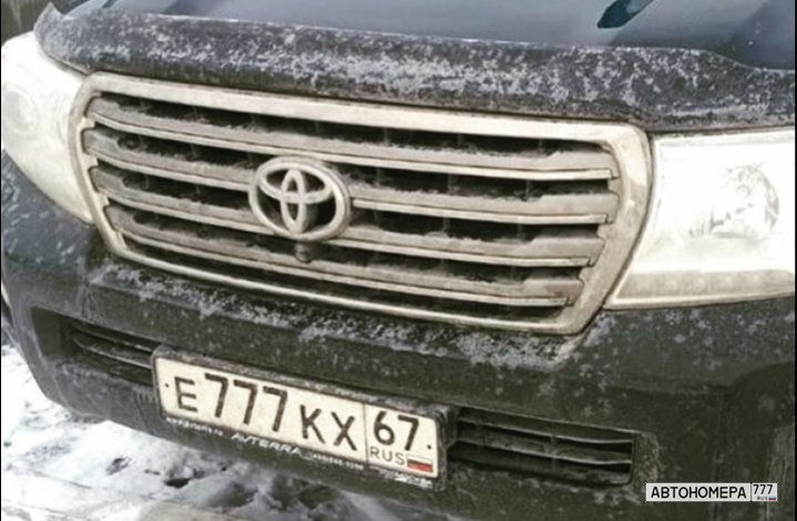 Номер Е777КХ67 на автомобиле