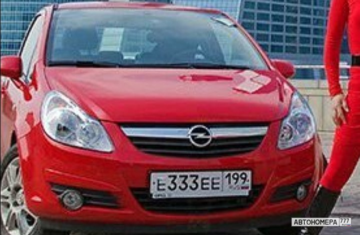 Номер Е333ЕЕ199 на автомобиле