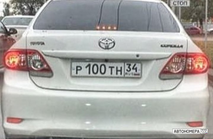 Номер Р100ТН34 на автомобиле