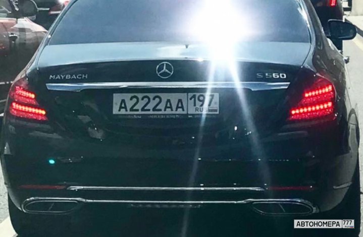 Номер А222АА197 на автомобиле