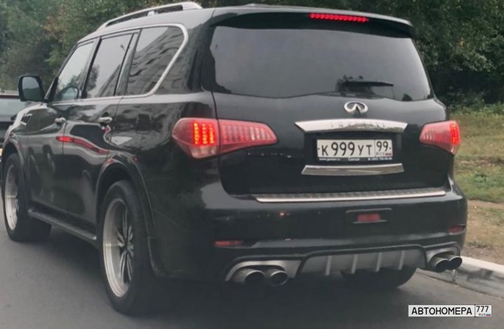 Номер К999УТ99 на автомобиле