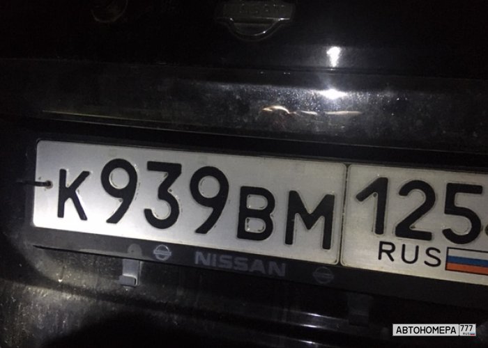 Номер К939ВМ125 на автомобиле
