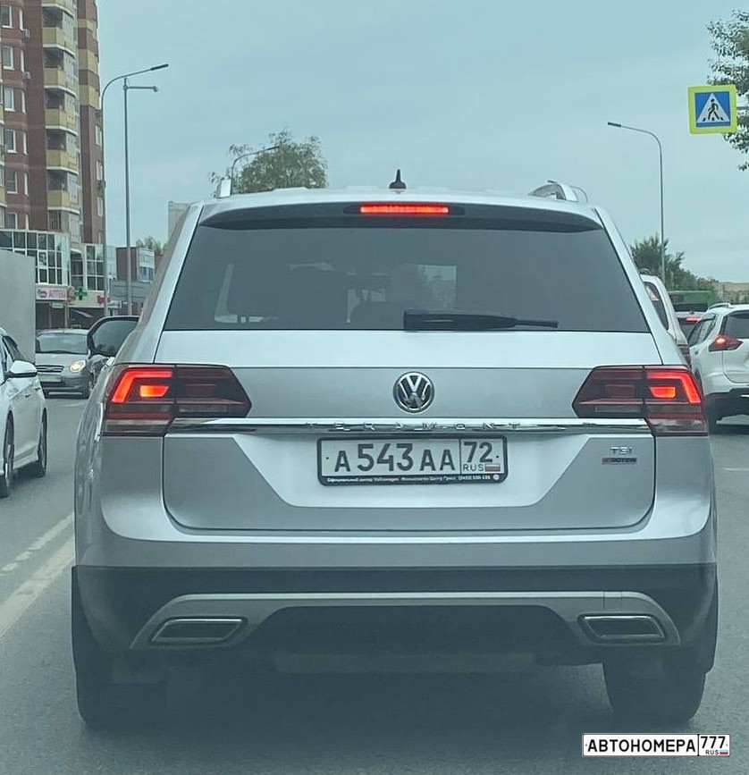 Номер А543АА72 на автомобиле