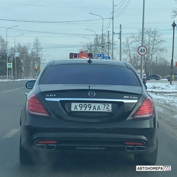Номер А999АА72 на автомобиле
