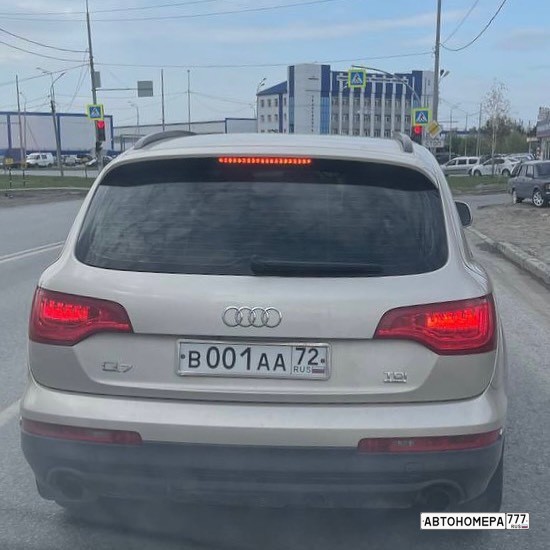 Номер В001АА72 на автомобиле