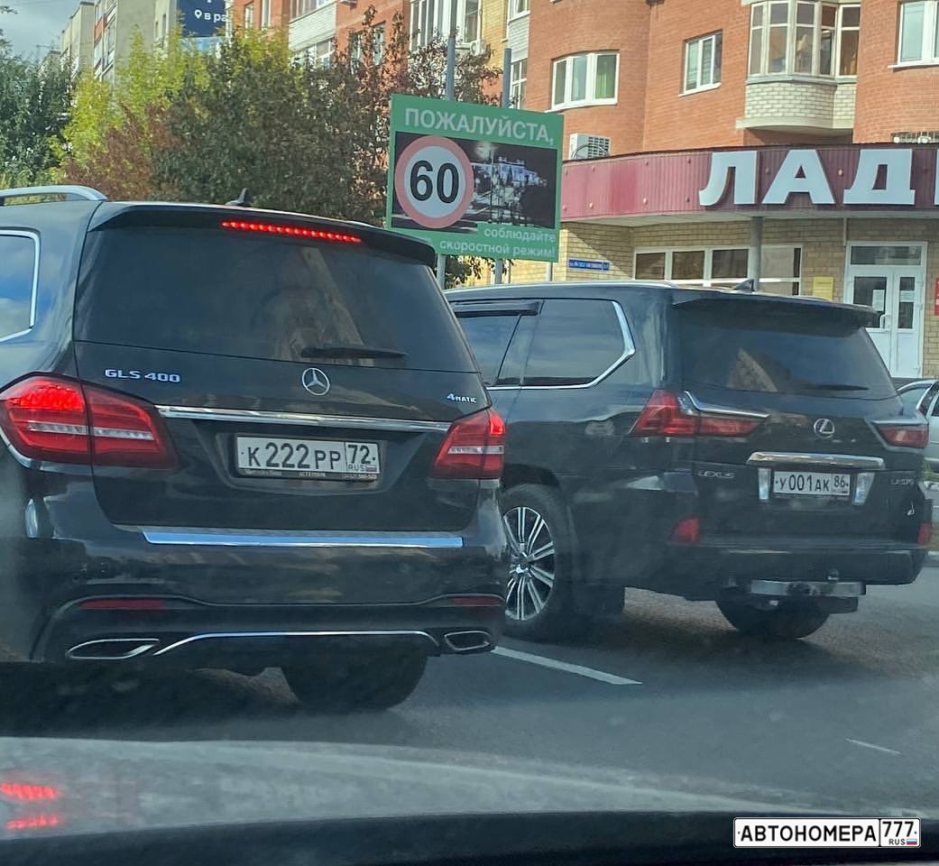 Номер К222РР72 на автомобиле