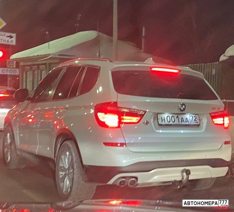 Номер Н001АА72 на автомобиле