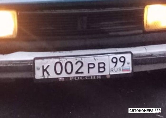 Номер К002РВ99 на автомобиле