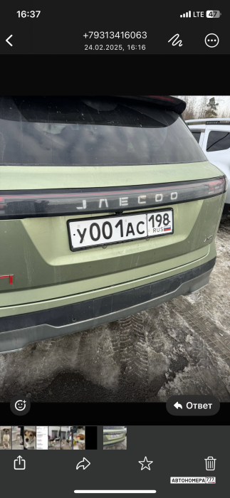 Номер У001АС198 на автомобиле