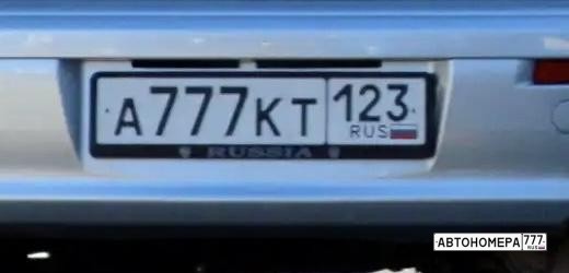 Номер А777КТ123 на автомобиле