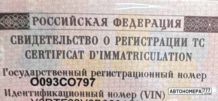 Номер О093СО797 на автомобиле