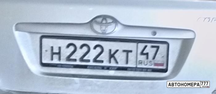 Номер Н222КТ47 на автомобиле